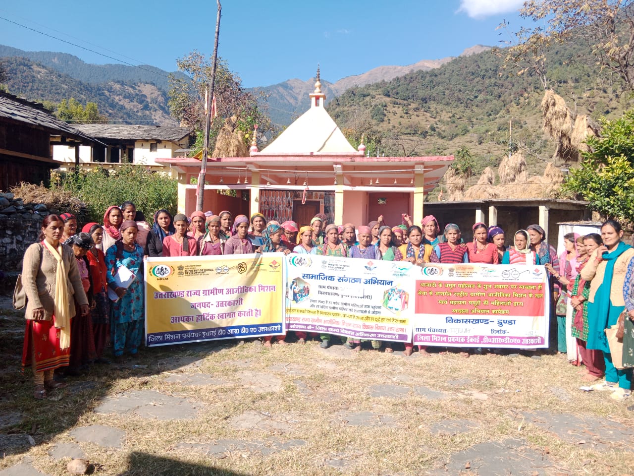 उत्तरकाशी । राष्ट्रीय ग्रामीण आजीविका मिशन के तहत डुण्डा प्रखंड के ग्राम पंचायत भराण गाँव में सीआरपी राऊण्ड के माध्यम से सामाजिक संगठन समावेशन अभियान के तहत छ: स्वयं सहायता समूहों का गठन किया गया l इस दौरान गाँव में स्वच्छता अभियान भी चलाया गया । उक्त जनवरी देते हुए जिला थिमैटिक एक्सपर्ट प्रमेन्द्र सिह राणा ने बताया कि राज्य मिशन ईकाई उत्तराखंड राज्य ग्रामीण आजीविका मिशन के क्रम में जनपद में गरीब, वंचित, एकल महिला, दिव्यांगजनों को मिशन से जोड़ने पर समस्त विकास खण्डों मे आन्तरिक सीआरपी राऊण्ड गतिमान है l जिसमें सीनियर सीआरपी एंव सक्रिय महिला की टीम गठित कर खण्ड विकास अधिकारीयों की देखरेख में समूह गठन का कार्य सभी विकास खण्डों में प्रगति पर है l गौरतलब है कि शासन द्वारा इस वित्तीय वर्ष में 1764 समूह का लक्ष्य दिया गया है l जिसके सापेक्ष 1000 से अधिक समूहों का गठन किया गया, जिसमें 800 से अधिक समूहों का एमआईएस पोर्टल पर अंकित भी किया गया है l थिमेटिक एक्सपर्ट द्वारा बताया गया है कि ज़िलाधिकारी द्वारा माह नवम्बर अन्त तक 1764 समूहों का गठन पूर्ण किये जाने पर निर्देश दिये गये जिसमें समस्त विकास खण्डों में समूह गठन का कार्य प्रगति पर है l इस मौके पर एरिया समन्वयक डुण्डा, ग्राम पंचायत प्रधान भराण गाँव, आन्तरिक पी आर पी डुण्डा तथा आन्तरिक सीआरपी टीम भी उपस्थित रही।