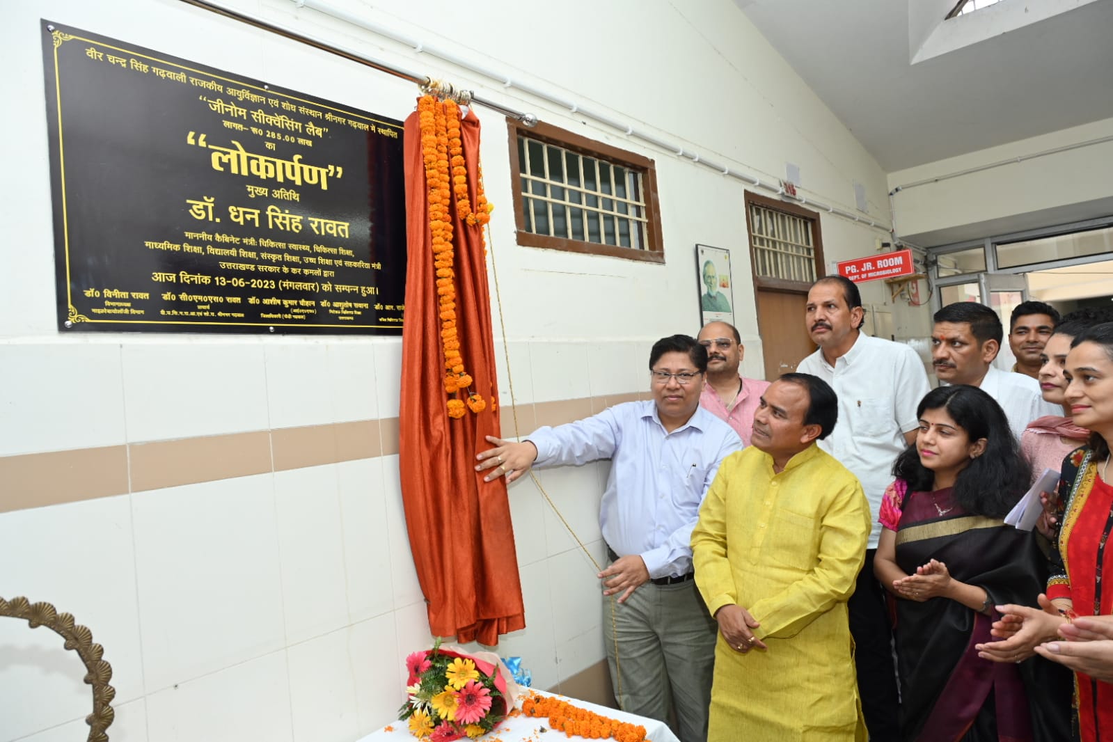 सूबे के चिकित्सा स्वास्थ्य एवं चिकित्सा शिक्षा मंत्री डॉ. धन सिंह रावत ने आज श्रीनगर मेडिकल कॉलेज में रूपये 285 लाख की लागत से बनी जीनोम सिक्वेंसिंग लैब का लोकार्पण किया। उन्होंने बताया कि जीनोम सिक्वेंसिंग की जांच के लिये सैम्पल बाहर नहीं भेजे जायेंगे, बल्कि श्रीनगर मेडिकल कॉलेज में ही जीनोम सिक्वेंसिंग होगी। इससे करोना महामारी सहित अन्य जटिल रोगों की जांच आसानी से की जा सकेगी। विभागीय मंत्री ने बताया कि राज्य के चारों मेडिकल कॉलेजों देहरादून, श्रीनगर, हल्द्वानी व अल्मोड़ा में स्थापित जीनोम सिक्वेंसिंग लैब में प्रति माह 2 हजार से अधिक जीनोम सिक्वेसिंग की क्षमता है, वर्तमान में दून एवं हल्द्वानी मेडिकल कॉलेज में जीनोम सिक्वेसिंग लैब क्रियाशील है जबकि श्रीनगर मेडिकल कॉलेज में लैब का विधिवत शुभारम्भ कर दिया गया है। शीघ्र ही अल्मोड़ा मेडिकल कॉलेज में जीनोम सिक्वेंसिंग लैब का संचालन शुरू कर दिया जायेगा, इसके लिये इनसाकॉग (आईएनएसएसीओजी) में पंजीकरण के लिये एनसीडीसी से अनुमति मांगी गई है। स्वास्थ्य मंत्री डॉ. धन सिंह रावत ने मेडिकल कॉलेज में मेडिकल छात्र-छात्राओं से मुलकात कर उनकी समस्याओं को सुना और कॉलेज प्रशासन को उनकी दिक्कतों को शीघ्र दूर करने के निर्देश दिये, इस दौरान उन्होंने कॉलेज में पुस्तकालय का भी निरीक्षण किया और नामचीन लेखकों एवं मेडिकल संबंधी शोध पत्रों को पुस्तकालय में उपलब्ध कराने के निर्देश अधिकारियों को दिये। इस अवसर पर निदेशक चिकित्सा शिक्षा डॉ. आशुतोष सयाना, प्राचार्य श्रीनगर मेडिकल कॉलेज डा. सी.एम.एस. रावत, चिकित्सा अधीक्षक डा. रविन्द्र बिष्ट सहित कॉलेज स्टॉफ एवं मेडिकल छात्र-छात्राएं उपस्थित रहे।