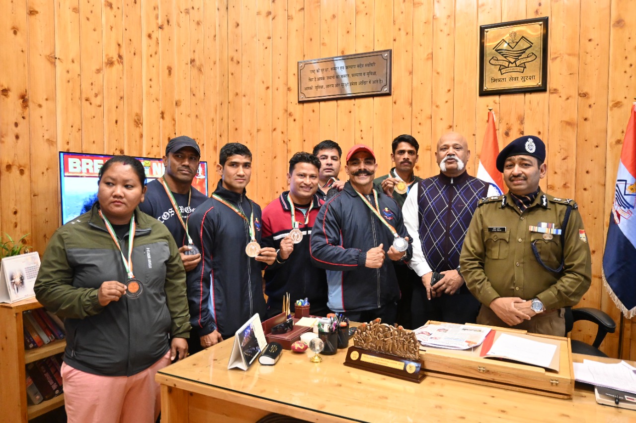 आर्म कुश्ती- 55 किग्रा वर्ग में आरक्षी कैलाश लाल ने स्वर्ण पदक, बॉडी बिल्डिंग- 55 किग्रा वर्ग में आरक्षी त्रिलोक सिंह और वेट लिफ्टिंग- 73 किग्रा वर्ग में मुख्य आरक्षी राजकुमार परिहार ने रजत पदक, बॉडी बिल्डिंग- 65 किग्रा वर्ग में आरक्षी जितेन्द्र सिंह, 90 किग्रा वर्ग में आरक्षी अमित क्षेत्री, बॉक्सिंग- 60 से 63 किग्रा वर्ग में मुख्य आरक्षी विनीता महर, 63 से 66 किग्रा वर्ग में मुख्य आरक्षी हेमन्ती मेहता, वेट लिफ्टिंग- 73 किग्रा वर्ग में मुख्य आरक्षी ममता कुटियाल, पावर लिफ्टिंग- 105 किग्रा वर्ग में मुख्य आरक्षी भगवन्त सिंह ने कांस्य पदक अर्जित किया। डीजीपी अशोक कुमार ने कहा कि हमारे खिलाड़ी राष्ट्रीय एवं अंतर्राष्ट्रीय स्पर्धाओं में पदक जीतकर देश और प्रदेश को गौरवान्वित कर रहे हैं, जिन पर हमें गर्व है। इस अवसर पर सभी खिलाड़ियों ने आश्वस्त किया कि आने वाले प्रतियोगिताओं में एक बार फिर से उत्तराखंड पुलिस का नाम रोशन करने के लिए अपना सर्वश्रेष्ठ प्रदर्शन करेगें।