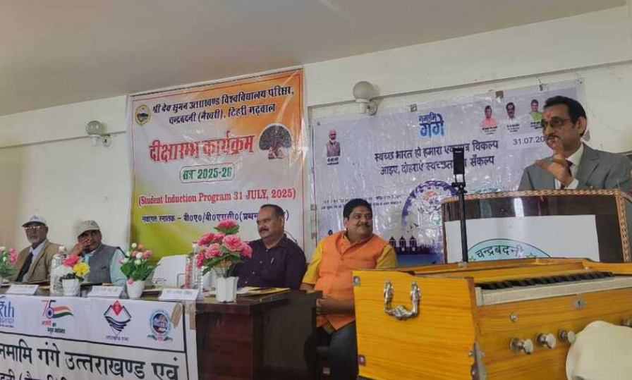 टिहरी। श्रीदेव सुमन उत्तराखंड विश्वविद्यालय के चंद्रबदनी-नैखरी परिसर में गुरुवार को पहली बार नवप्रवेशी छात्र-छात्राओं के लिए इंडक्शन प्रोग्राम ‘दीक्षारंभ’ का भव्य आयोजन किया गया। यह कार्यक्रम विद्यार्थियों के शैक्षिक जीवन की औपचारिक शुरुआत के रूप में मनाया गया, जिसमें विश्वविद्यालय के कुलपति एनके जोशी मुख्य अतिथि के रूप में उपस्थित रहे।