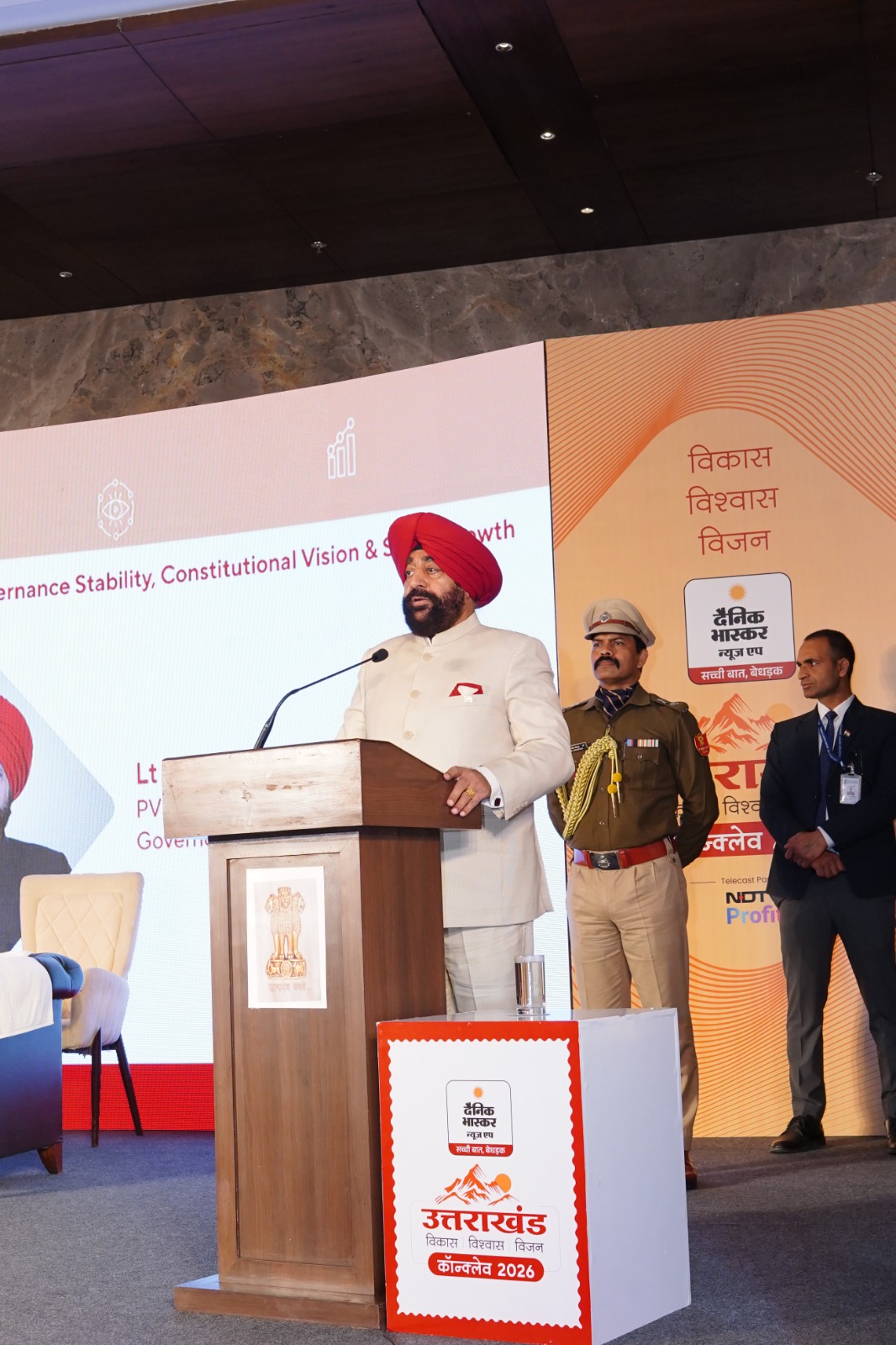 देहरादून के राजपुर रोड स्थित होटल हयात सेंट्रिक में सोमवार को दैनिक भास्कर की ओर से ‘उत्तराखंड-विकास-विश्वास-विजन कॉन्क्लेव’ का आयोजन किया गया। कार्यक्रम का शुभारंभ राज्यपाल रिटायर्ड लेफ्टिनेंट जनरल गुरमीत सिंह और विधानसभा स्पीकर ऋतु खंडूरी भूषण ने दीप प्रज्वलित कर किया। इस एक दिवसीय कार्यक्रम में राज्य के विकास, निवेश, उद्योग, पर्यटन, चारधाम यात्रा, फिल्म शूटिंग और युवाओं के अवसरों जैसे विषयों पर विभिन्न सत्रों के माध्यम से चर्चा और मंथन हुआ।
