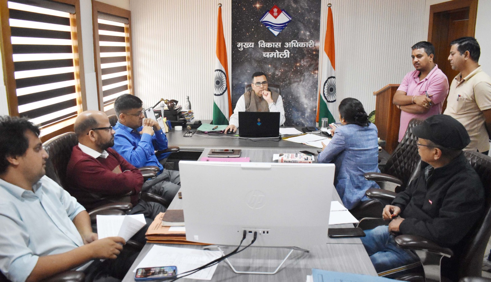 चमोली। मुख्य विकास अधिकारी डॉ त्रिपाठी की अध्यक्षता में वाइब्रेंट विलेज प्रोग्राम की समीक्षा बैठक विकास भवन कार्यालय में आयोजित की गयी। उन्होंने सम्बंधित विभागों, आर्मी और आईटीबीपी को आपसी समन्वय से सीमांत गाँवों के विकास कार्यों को बढ़ावा देने की बात कही। बैठक में मुख्य विकास अधिकारी ने सम्बंधित विभागों को निर्देशित किया कि वे अपने-अपने कार्यों की समयबद्ध प्रगति सुनिश्चित करें और विभाग आपसी समन्वय से गांवों के विकास में सक्रिय भूमिका निभाएं।सीडीओ ने एक जॉइंट कैलेंडर तैयार करने के निर्देश दिए, जिसमें विभागवार कराये जा रहें विकास कार्यों की जानकारी दर्ज होगी, जिससे सीमांत गांवो के विकास कार्यों को गति मिलेगी, और कार्यों में दोहराव की समस्या भी नहीं होंगी।