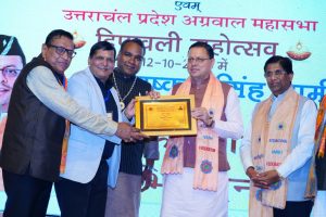 देहरादून। मुख्यमंत्री पुष्कर सिंह धामी रविवार को जीएमएस रोड, देहरादून में अंतर्राष्ट्रीय वैश्य महासम्मेलन द्वारा आयोजित दीपावली मेले में सम्मिलित हुए। इस अवसर पर मुख्यमंत्री धामी ने महाराजा अग्रसेन जी को नमन करते हुए उपस्थित जनां को दीपावली की अग्रिम बधाई एवं शुभकामनाएं देते हुए कहा कि दीपावली का पर्व हम सभी के जीवन में सकारात्मक ऊर्जा का संचार करने का एक विशिष्ट माध्यम है, जो हमें अंधकार से प्रकाश की ओर और बुराई से अच्छाई की ओर जाने की प्रेरणा देता है।