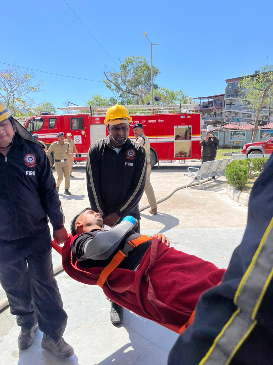 ऋषिकेश ट्रांजिट कैंप में आग लगने की स्थिति में पूरे कैंप को सुरक्षित रूप से खाली कराया गया। अभ्यास के दौरान पांच यात्रियों को गंभीर रूप से घायल मानते हुए उन्हें एंबुलेंस से एम्स ऋषिकेश भेजा गया, जबकि अन्य घायलों को मौके पर प्राथमिक उपचार दिया गया। अग्निशमन विभाग ने तत्परता दिखाते हुए आग पर काबू पाया।