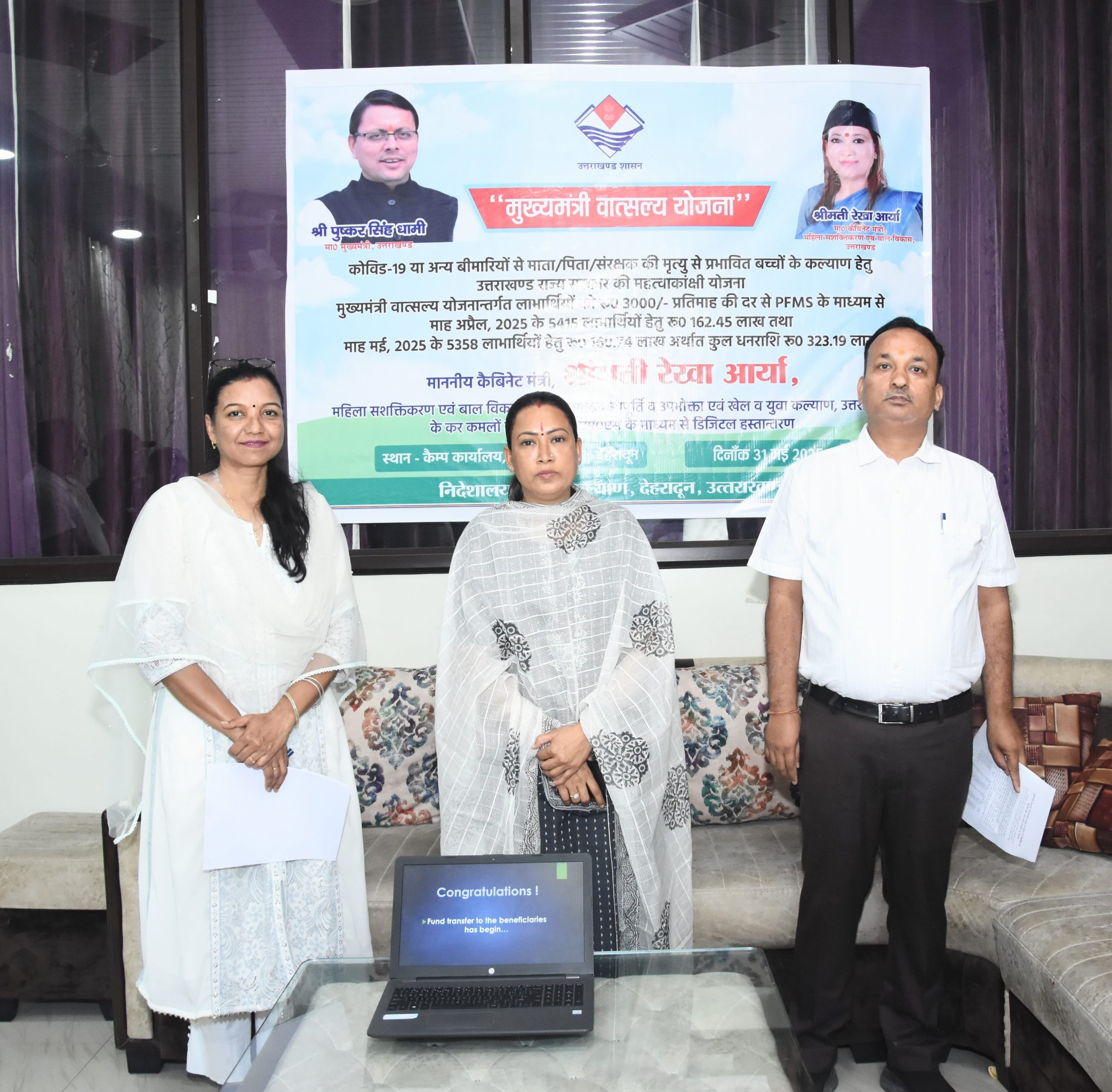 देहरादून : महिला सशक्तिकरण एवं बाल विकास मंत्री रेखा आर्या ने शनिवार को मुख्यमंत्री वात्सल्य योजना के तहत लाभार्थियों को 3 करोड़ 23 लाख रुपए से ज्यादा की धनराशि जारी की। कैंप कार्यालय पर धनराशि लाभार्थियों की खातों में डीबीटी करने के बाद कैबिनेट मंत्री रेखा आर्या ने बताया कि इस योजना में प्रदेश सरकार 2020 से ही कोरोना महामारी के समय अभिभावकों को खो देने वाले बेसहारा बच्चों को प्रति माह 3000 रू. की सहायता राशि देती है। इस योजना के तहत मार्च 2025 तक का धन पहले ही जारी कर दिया गया था।