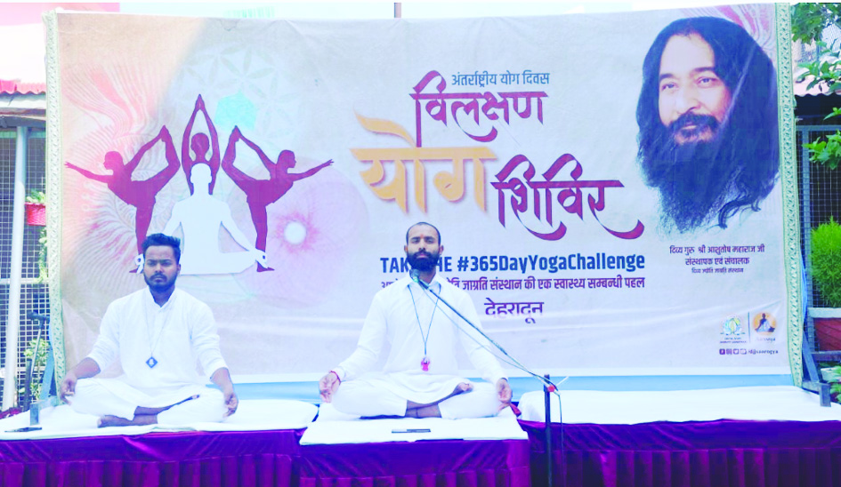 देहरादून। दिव्य ज्योति जाग्रति संस्थान के आरोग्य द्वारा, दिव्य गुरु आशुतोष महाराज जी के सहयोग से अंतरराष्ट्रीय योग दिवस के अवसर पर एक उत्कृष्ट कार्यक्रम का आयोजन किया गया। यह आयोजन शांतिपूर्ण देहरादून आश्रम में आयोजित किया गया था और इसमें सैकड़ों प्रतिभागी शामिल हुए और योग और पूर्णतात्विक स्वास्थ्य के लाभों को ग्रहण किया। इस एक दिवसीय कार्यक्रम का उद्देश्य शारीरिक, मानसिक और आध्यात्मिक स्वास्थ्य में योग की महत्वपूर्ण भूमिका को प्रचारित करना था। प्रतिभागियों को संगठित प्रार्थनाओं और ऊर्जा दायक ओम के ध्वनिमंत्रण के साथ प्रारंभिक सत्र में संलग्न किया गया, जिससे की शरीर को योग अभ्यास सत्र के लिए तैयार करने में मदद मिल सके कार्यक्रम का मुख्य ध्यान प्रतिभागियों को विभिन्न योगासन (स्थितियाँ), प्राणायाम (श्वासायाम) द्वारा स्वास्थ्य लाभ पहुचाना था द्य अनुभवी योग प्रशिक्षकों और दिव्य गुरु आशुतोष महाराज जी के शिष्यों द्वारा नेतृत्व किया गया, इसके माध्यम से प्रतिभागियों ने योग की गहन ज्ञान और परिवर्तनशील शक्ति में खुद को विलीन किया। इस सत्र ने शारीरिक, मानसिक और आध्यात्मिक व्यायामों का एक संगठित मिश्रण प्रदान किया जिसने सभी को स्वास्थ्य और सम्पूर्णता के प्रत्येक पूर्णतात्विक दृष्टिकोण को प्रदान किया द्य कार्यक्रम के दौरान, प्रतिभागियों ने योग प्रतिज्ञा ली, जिससे वे योग को अपने दैनिक जीवन में सम्मिलित करने और उसके लाभों को दूसरों तक पहुंचाने की प्रतिबद्धता प्रदर्शित करते हैं। यह समूहीन प्रतिबद्धता प्रतिभागियों की एकता और संकल्प को दिखाती है, जो एक स्वस्थ और संतुलित जीवन को अपनाने के लिए उत्साहित करती है। योग सत्रों के अलावा, उपस्थित लोगों को स्वस्थ भोजन और पोषण के बारे में मूल्यवान ज्ञान प्रदान किया गया। एक विशेष प्रदर्शनी ने योग पर आधारित संसाधनों और जानकारी का प्रदर्शन किया, जिसमें योग के इतिहास, लाभ और आधुनिक जीवन शैली के साथ उसका एकीकरण शामिल था।